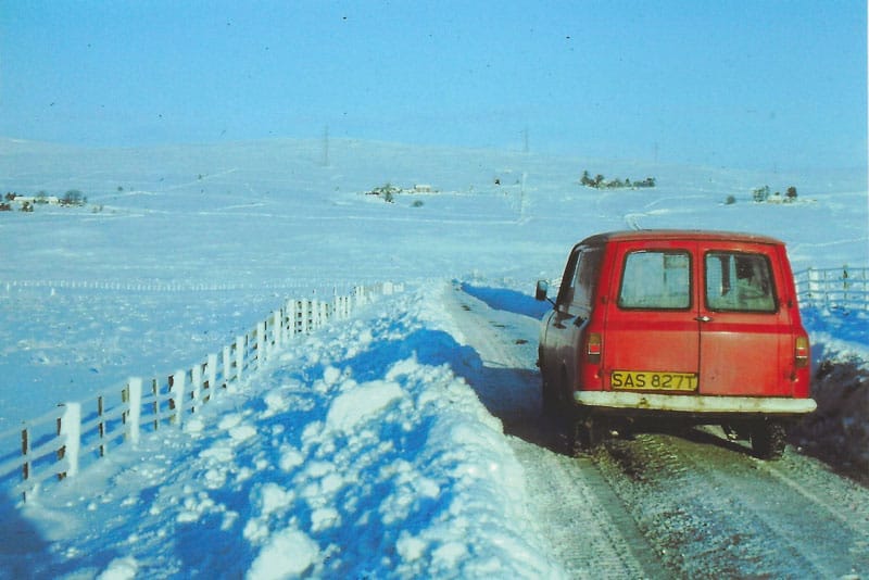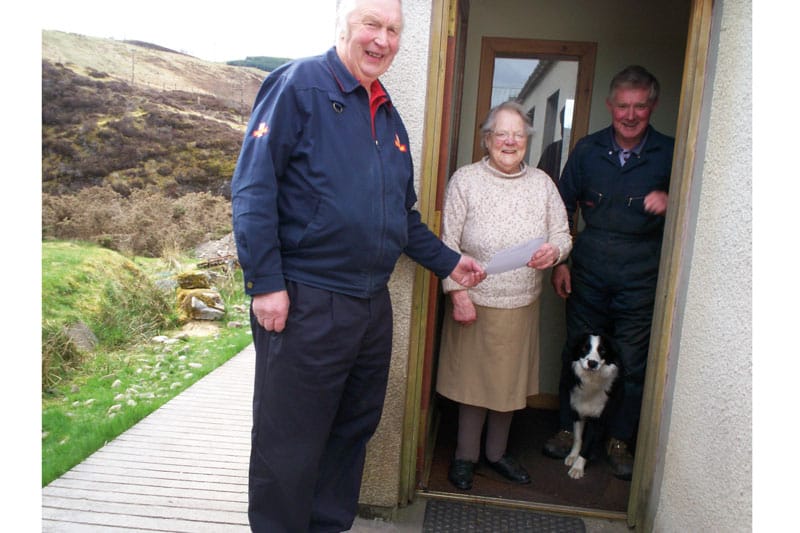 One dark, wintry January afternoon in the 1950s, Bunty and postmaster David Mackay realised that Jimmy Holmes, whose delivery route was Migdale, Airdens and Sleastary, had not returned yet. In those days there were no telephones in that area. After 6pm, Jimmy appeared at the office door almost collapsing with exhaustion. The van had got stuck in deep snow drifts at Sleastary and Jimmy had trudged through a blizzard all the way back to Ardgay Post Office. It was six weeks later when they managed to recover the van and it started first time!