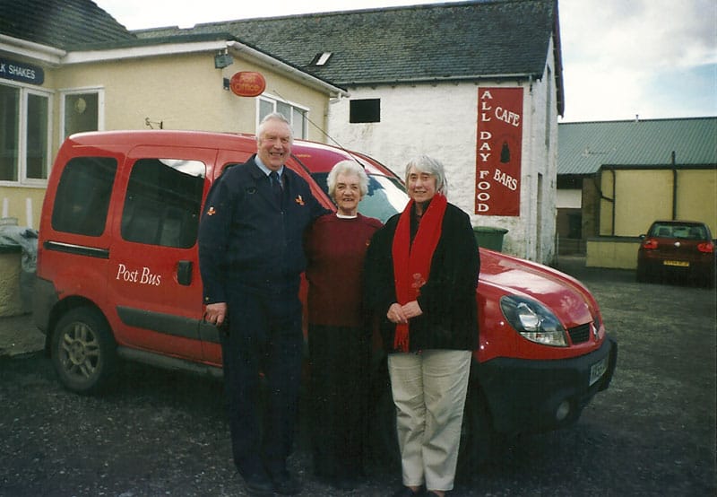 Angus MacLeod retired in 1989 and Frank Lee, who had been working as a relief postman became full time. Frank retired in 2003 and was replaced by John Campbell.