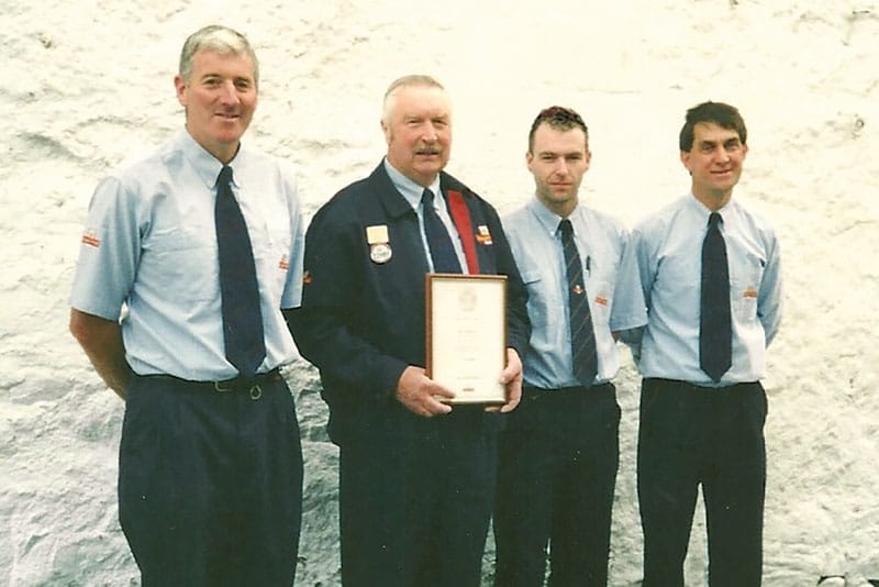 (Left) In 1994, Greta and the PO staff threw a retirement party for Bert Skene and David Mackay who had both been working as postmen in Ardgay office for over 20 years. The Burns Supper and dance were in Culrain hall and almost 120 people attended including staff from Dornoch and Lairg offices. (Right) Ian Smith joined in 1993 and left to start his own business in 2012. © Donald Brown / Greta MacDonald