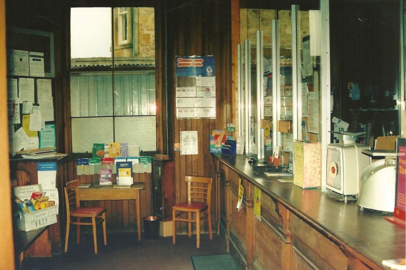 The old Post Office building in Ardgay was reputedly one of the best examples of Edwardian sorting office in the UK The wooden frames were stamped “ER”, and during the winter months a coal fire was needed to keep the place warm. On the centre image, the PO counter around the year 2000. © Donald Brown / Greta MacDonald