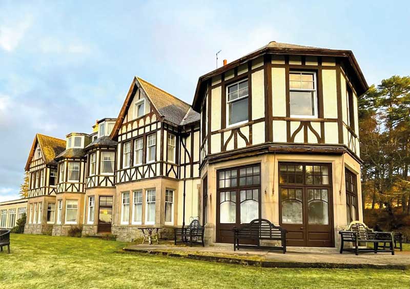 Built in 1910 as a private retreat so that Andrew Carnegie and his family could escape the hustle and bustle of Skibo Castle. At only 12 miles from Skibo, it had Falls of Shin at the bottom of its garden. Today it is operated as a hotel, featuring, among other traces of Andrew Carnegie's era, the only complete Liberty of London interior in Scotland.