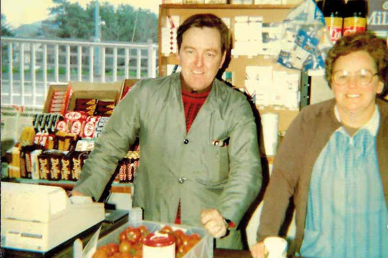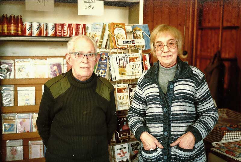 (Left) Paper shop in Ardgay owned by Alec Smith in the early 1980s. (Right) Alec Smith and Nancy Ross (who also worked in the paper shop) retired on 18th January 1986, this photo was taken on their last day. © Donald Brown