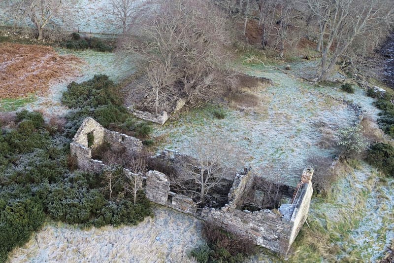 Now a ruin, it was built as a storehouse in 1820 at the woods South West of Creich Mains called Coill a Bhad-daraich (‘oak woods’). Estate owner Thomas Houston converted it to a distillery in 1823 at a cost of £1,000, and it operated for about 10 years, producing around 10,000 gallons of malt whisky a year. It was offered for rent in 1833. The advert referred to the property as “The Mains of Meikle Creich, and the Distillery of Baddaroch”.
