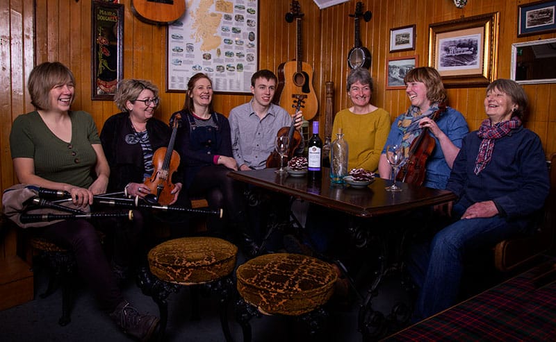 We met with the Sutherland Sessions committee on a stormy February afternoon at Invershin pub. The photo shoot was done in a very relaxed, cheerful atmosphere. Clearly there might not be many occasions for all of them to see each other, because at some point they were having an impromptu meeting in between photos. Becky Shaw kindly answered my questions on behalf of the group.
